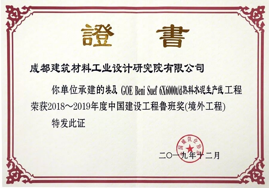 Luban Award Certificate