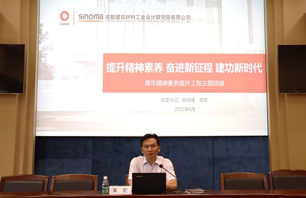为贯彻落实习近平总书记在庆祝中国共产主义青年团成立100周年大会上重要讲话精神,深入开展青年素养提升工程,按照中国建材集团和中材国际党委相关要求,6月20日,成都建材院(以下简称:公司)党委书记、总经理吴宏为公司全体团员和青年代表讲授了以《提升精神素养